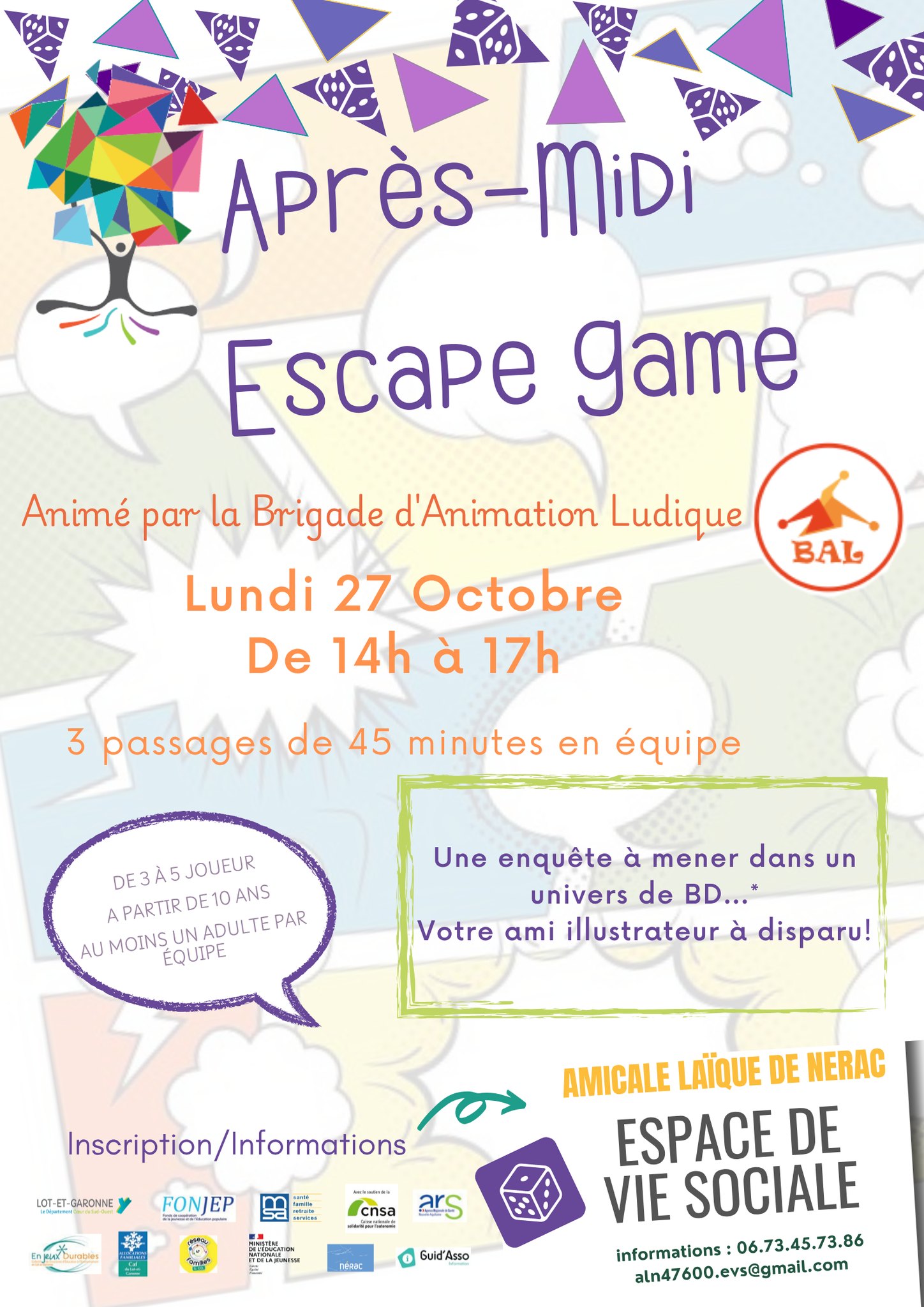 On se retrouve à l'EVS de Nérac pour jouer l'escape game "BD". Amis détective cette après-midi est pour vous.