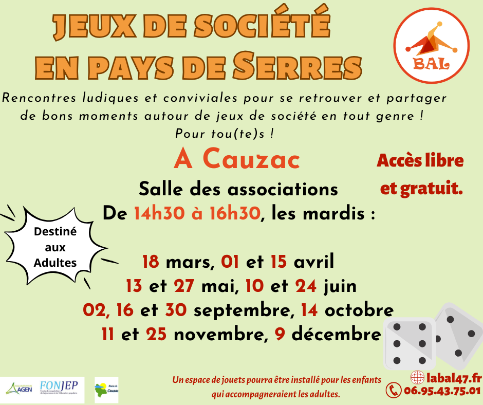 Reprise des temps de jeux de société pour adultes en Pays de Serres à Beauville !