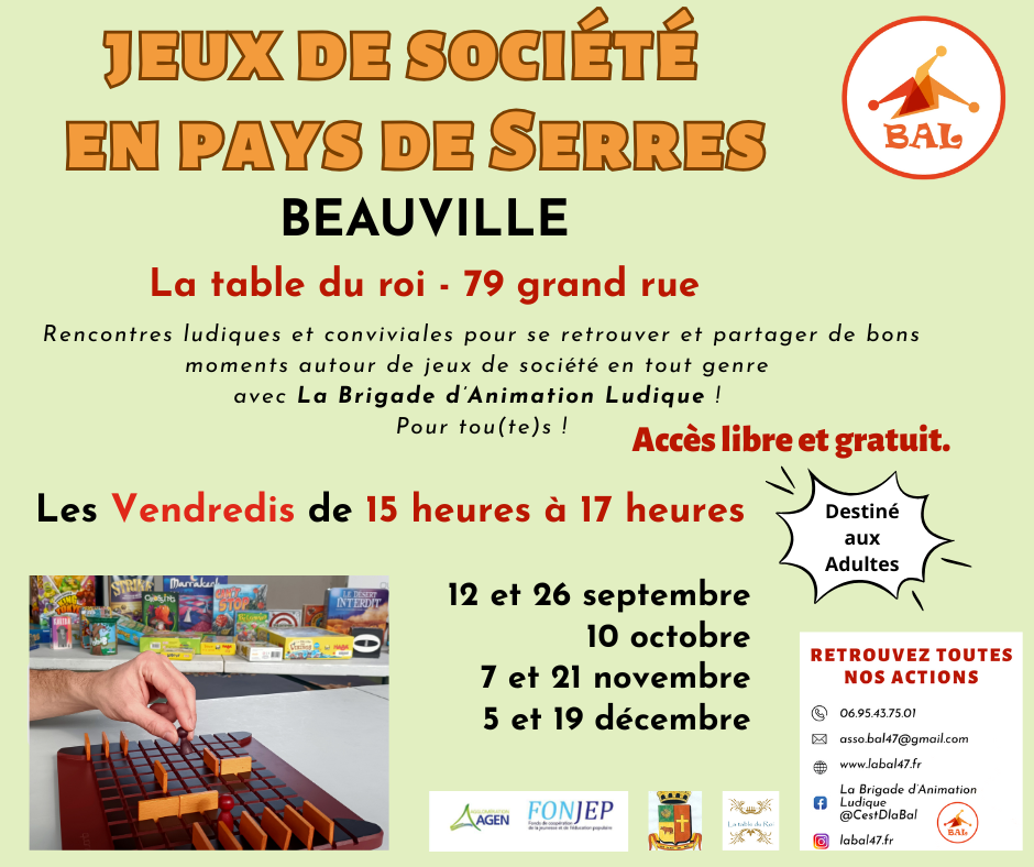 Reprise des temps de jeux de société pour adultes en Pays de Serres à Beauville !