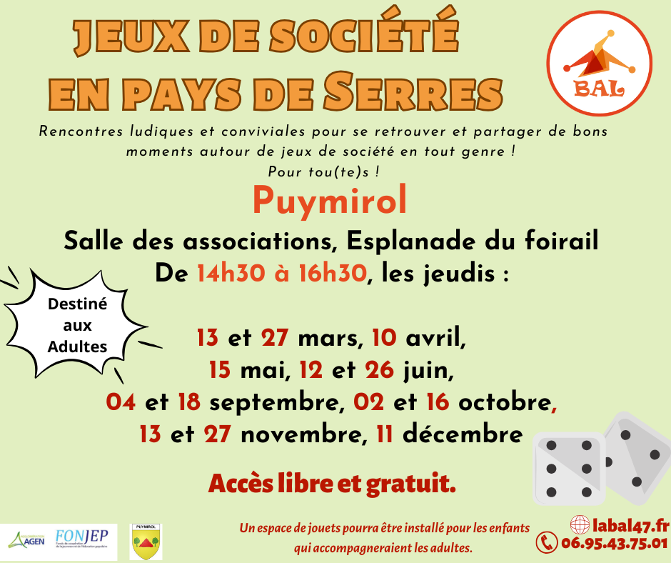 Retrouvez nous un jeudi sur deux pour un temps convivial à la découverte de jeux de société à Puymirol !